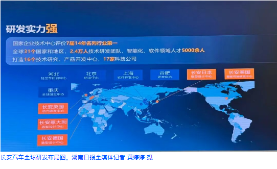 图上显示,长安汽车在全球31个国家和地区,布局了研发站点。