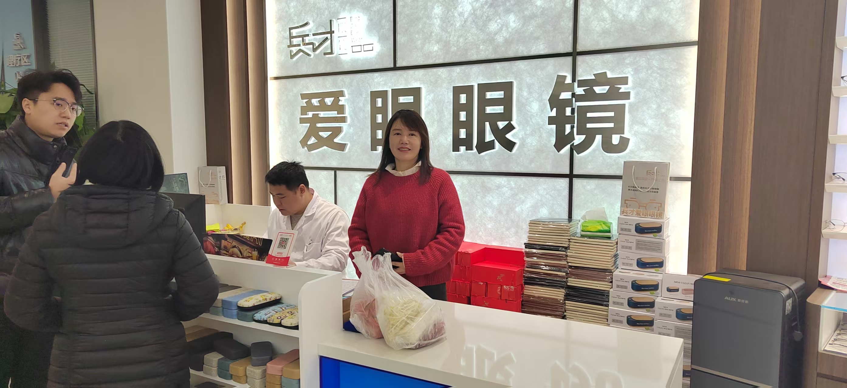 兵才大哥的掌心有常年握验光仪留下的浅沟,像两条悄悄流淌的湘江支流;小英姐的睫毛上栖着温柔的光,她说话的时候,你会误以为“责任”这个词本身也会微笑。他们告诉我:我们是贫苦出生,我们的初心就是——“要让全湖南的每一双眼睛,都免于黑暗。”誓言生根,长出56家自营门店,长出“兵才爱眼眼镜”这条通往往光明的藤蔓,从长沙爬到湘西,从洞庭湖攀到南岳,在风里摇曳成一面写着“为人民服务”的旗。