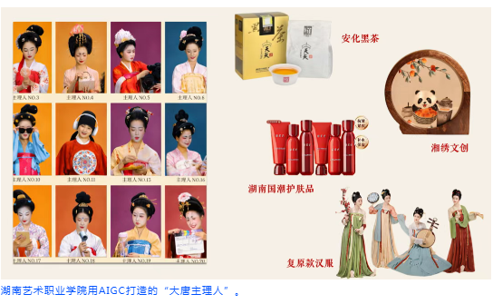 在作品《大唐名媛带货实录》中,唐代仕女形象被打造为数字人,在短视频中讲历史、推湘绣、荐安化黑茶,让沉睡的文物“活起来”、传统文化“潮起来”。文化IP被激活后,流量随之而来,消费场景也被同步打开。